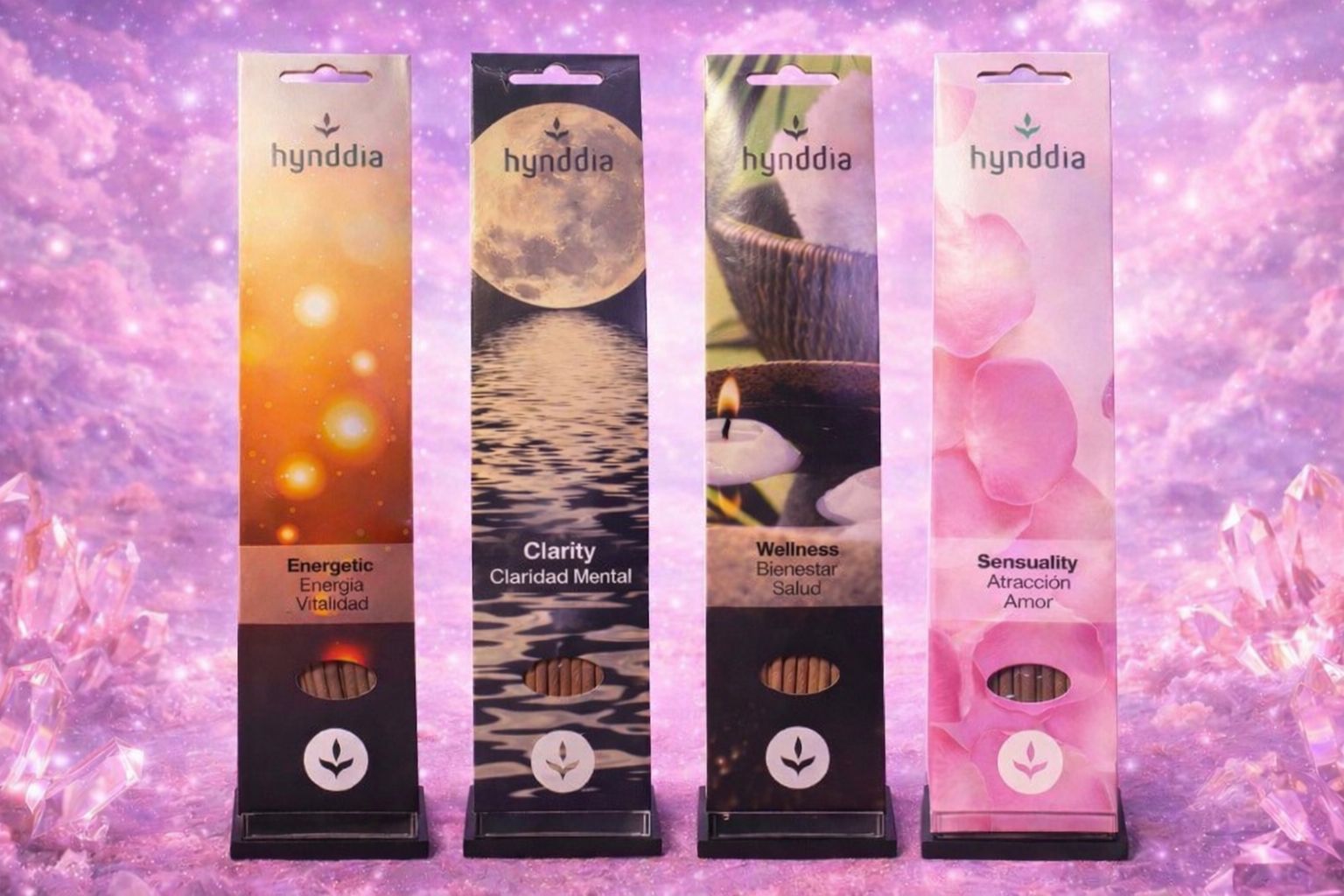 Inciensos Premium Esencia Viva Descubre la colección de inciensos en stick de la gama premium de Hynddia Essenti, elaborados con fragancias de alta calidad y presentados en una varilla más grande para una experiencia más duradera e intensa. Cada incienso está diseñado para transformar el ambiente y acompañarte en distintos estados emocionales y energéticos.